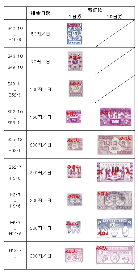 過去の紫証紙の掛金日額を教えてください。